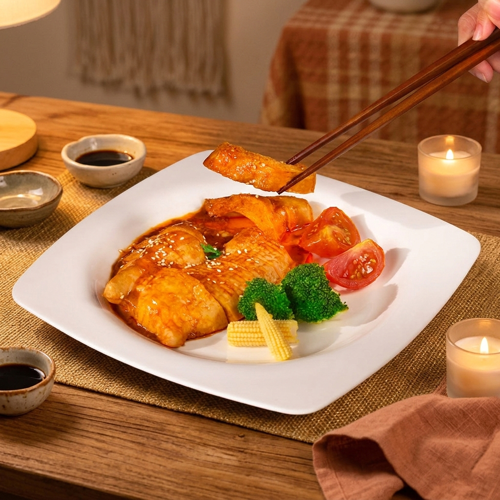 【炸】①完全解凍後,油溫加熱至170~180度,油炸1分鐘外觀呈金黃色。②糖醋醬,解凍至常溫後即可做為沾醬食用。