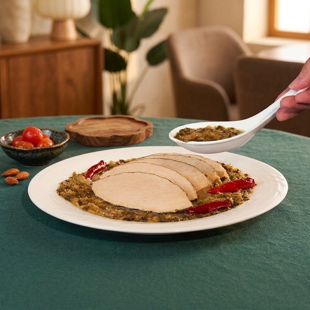 酸菜湯成份:水、酸菜【芥菜、水、鹽、防腐劑(苯甲酸鈉)】、白花菜、芥花油、白蘿蔔、白山藥、白醋、腰果鹽、藤椒油(菜籽油、藤椒)、辣椒、糖、薑、香菇粉(麥芽糊精、香菇粉、鹽、5'-次黃嘌呤核苷磷酸二鈉、5'-鳥嘌呤核苷磷酸二鈉)、花椒粒、L-麩酸鈉、酵母抽出物、洋菇粉(洋菇抽出物、糊精)、昆布粉(糊精、昆布萃取物、5'-次黃嘌呤核苷磷酸二鈉、麥芽糊精)、香料、胺基乙酸、DL-胺基丙酸、芹菜粉(麥芽糊精、芹菜抽出物、卵磷脂)